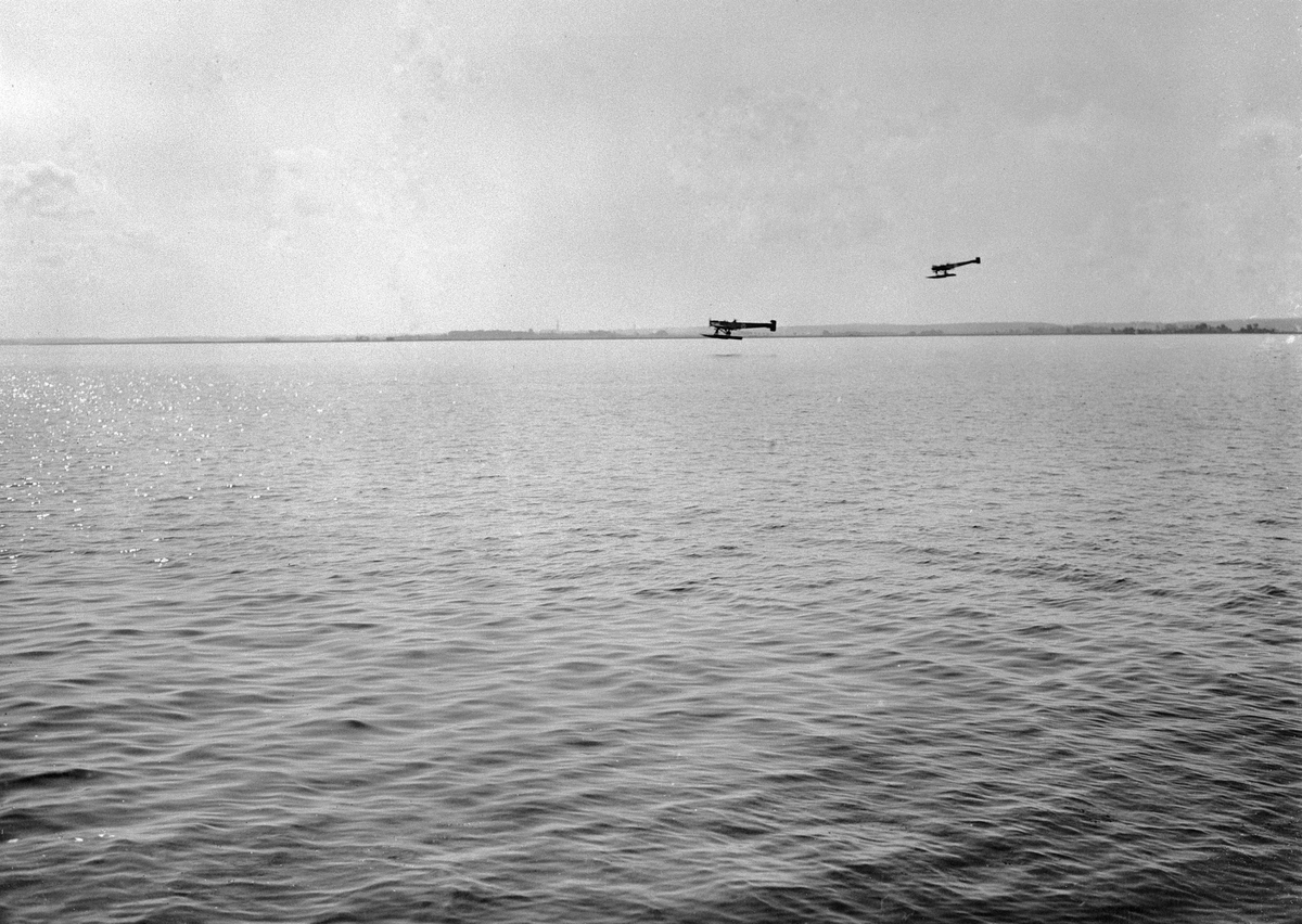 Två flygplan Hansa typ 42, Heinkel He 2 under landning på sjön Roxen, omkring 1924-1926.