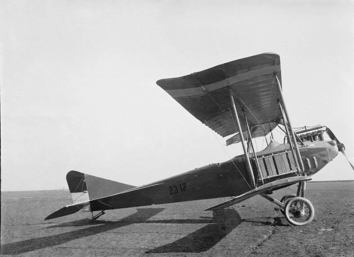 Militärt flygplan Albatros B.I märkt 23.17 tillhörande Österrike-Ungern står på ett fält. Vy från sidan.