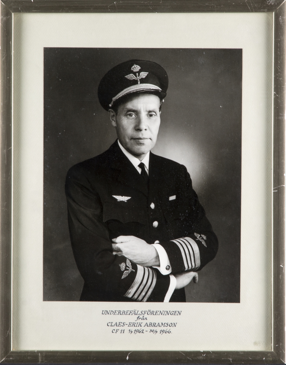 Porträttfotografi av Claes-Erik Abramson, chef för Södermanlands flygflottilj 1962-1966. Inramat foto.