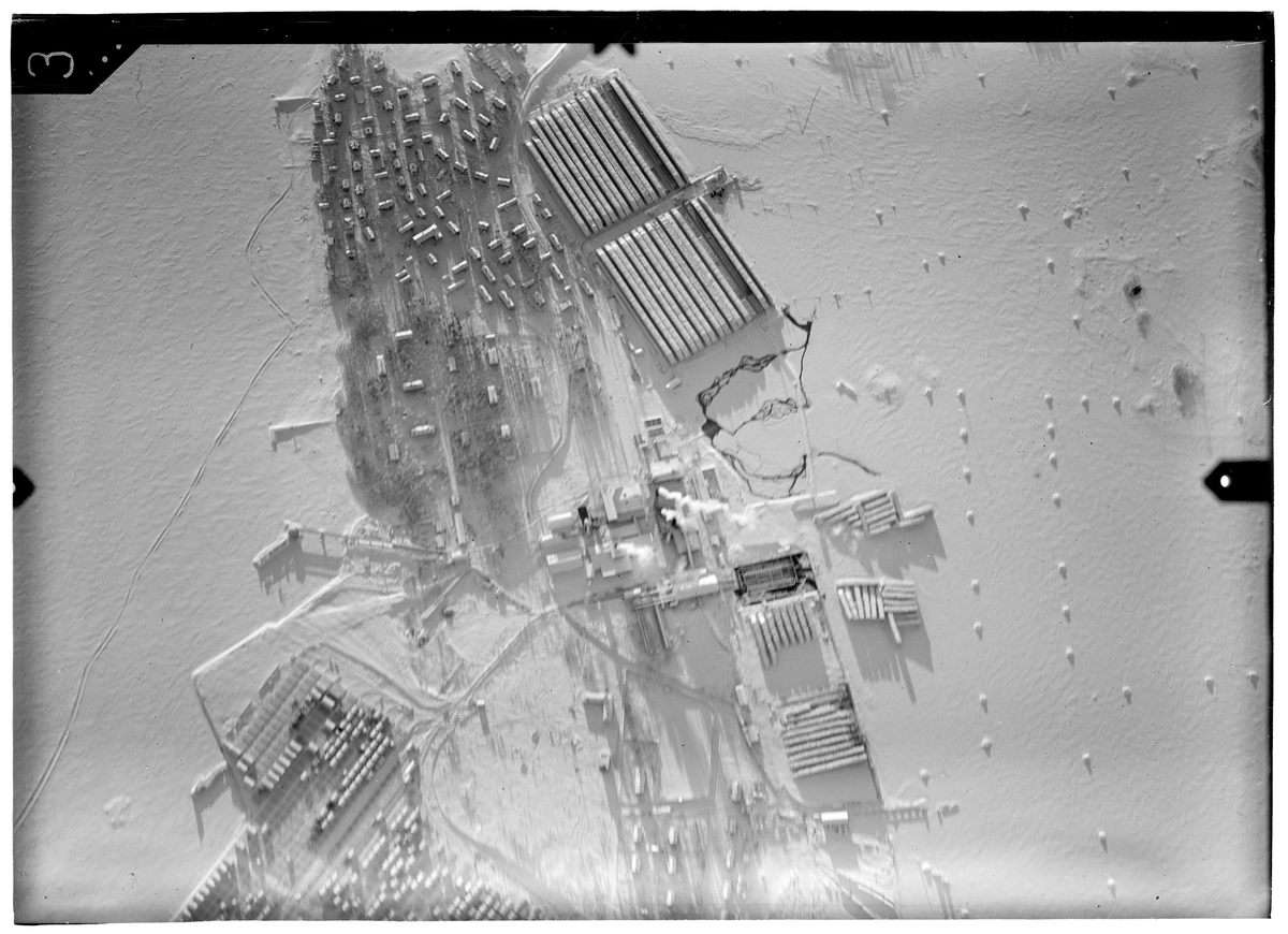 Flygfotografi av Veitsiluoto. Lodbild tagen av flygare vid F 19, Svenska frivilligkåren i Finland under finska vinterkriget, 1940.