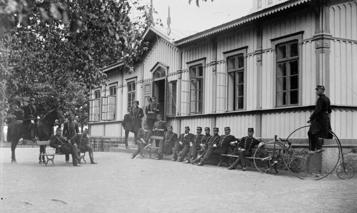 Officerare ur livgrenadjärregementet framför officerssalongen på Malmen.