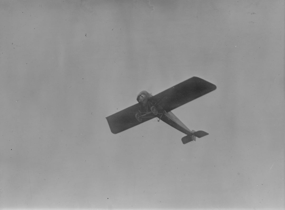 Flygplan Thulin typ B i luften. Vy nedifrån.