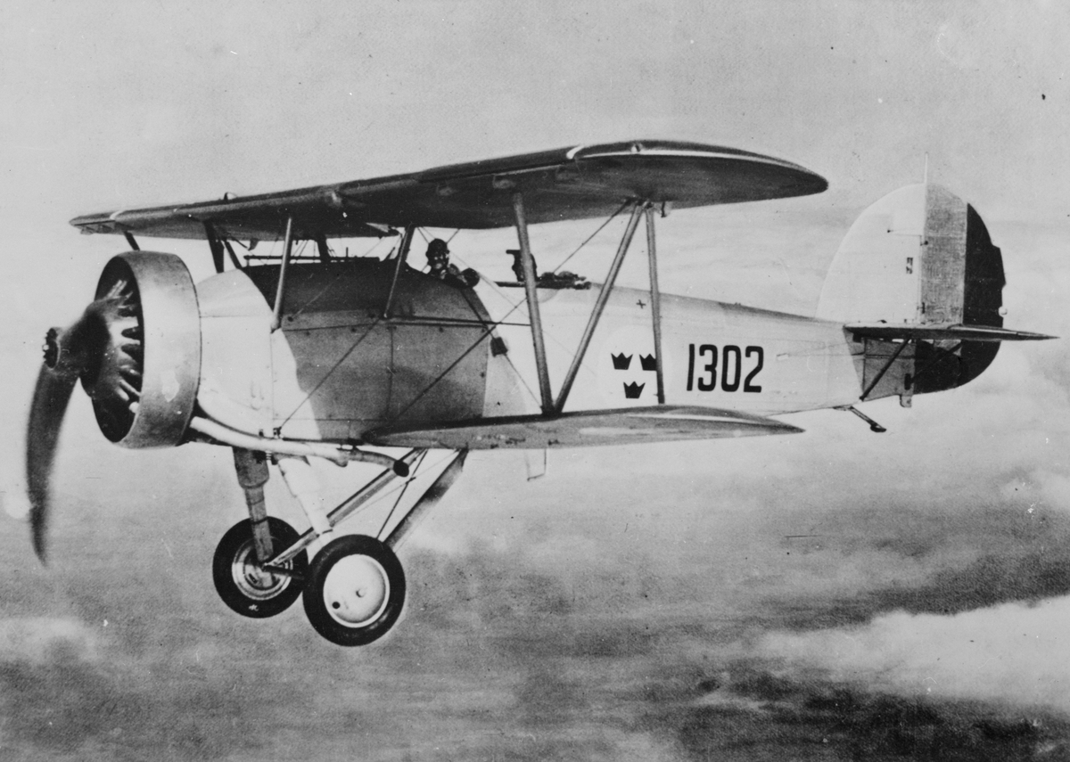 Flygplan S 7 Hawker Hart märkt nummer 1302 i luften.