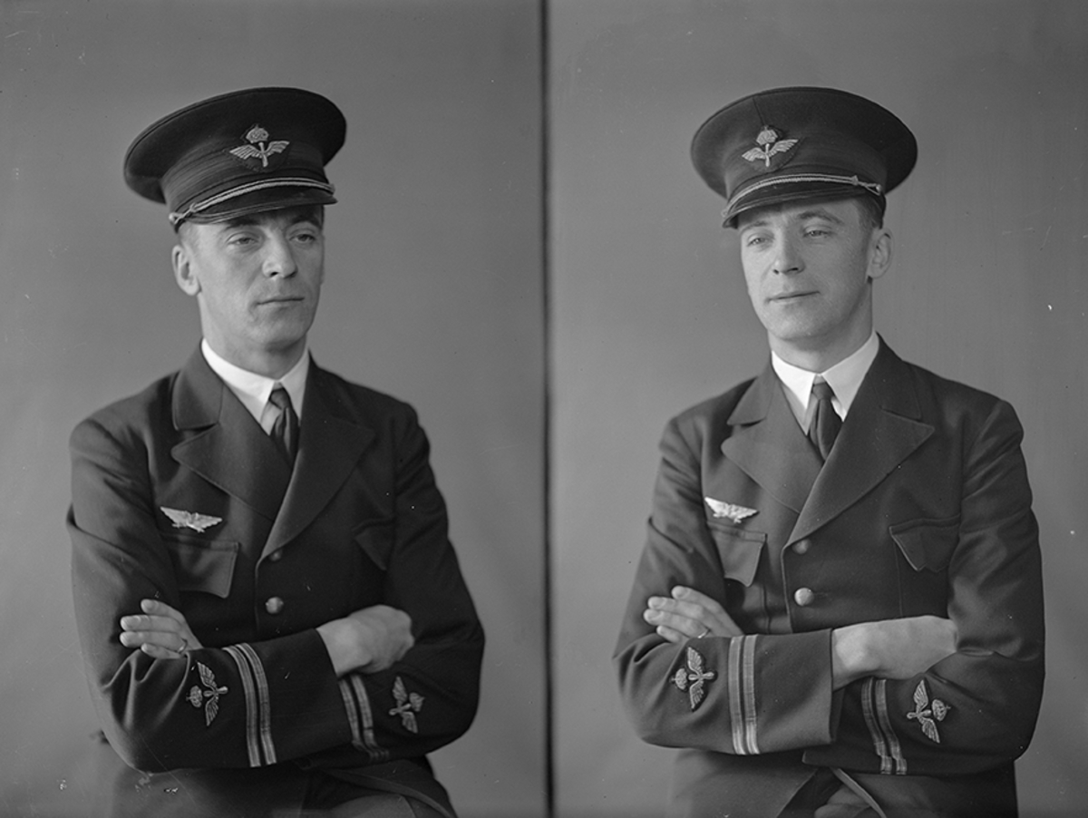 Porträtt av löjtnant David Carlberg, militär flygförare och flygspanare. 2 bilder.