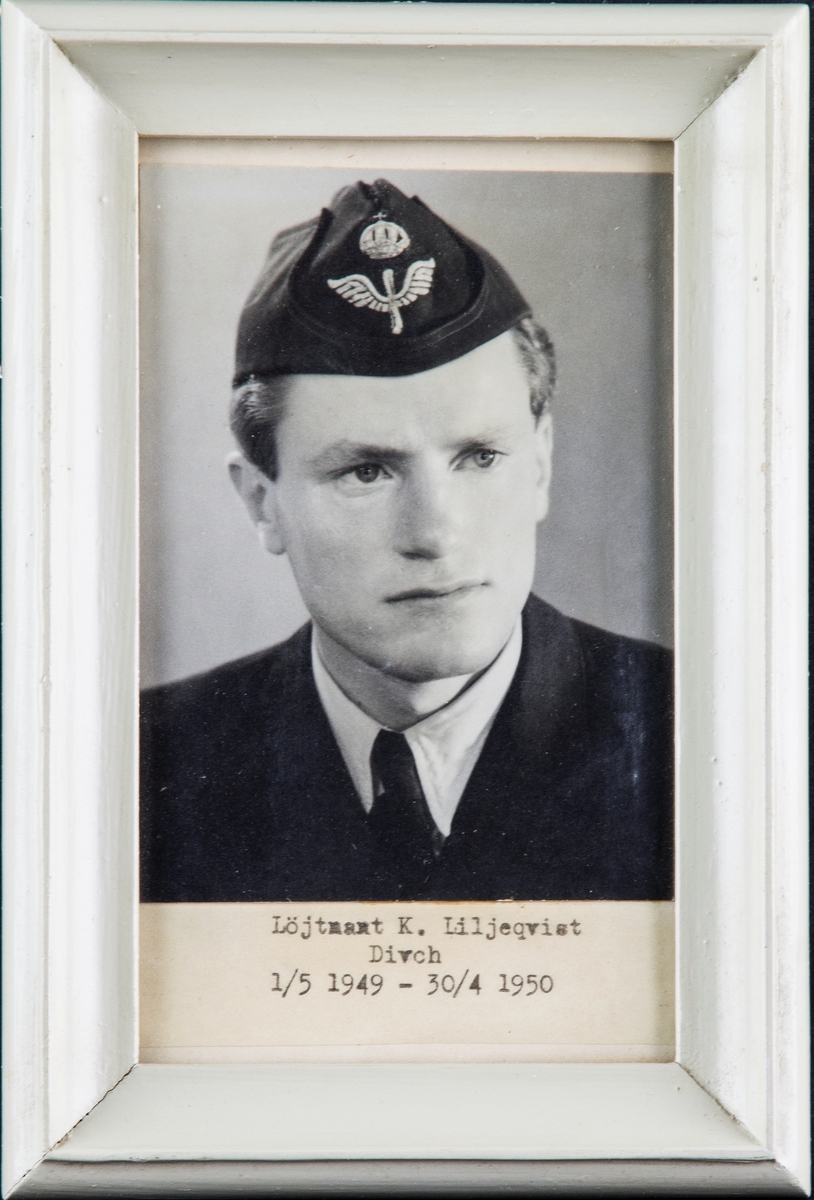 Porträttfotografi av löjtnant K. Liljeqvist, divisionschef på Kalmar flygflottilj, F 12, 1949-1950.