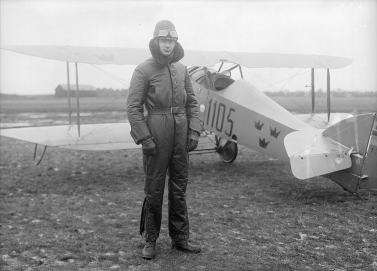 Furir framför flygplan Tummeliten nr 1105 ur Flygkompaniet.
