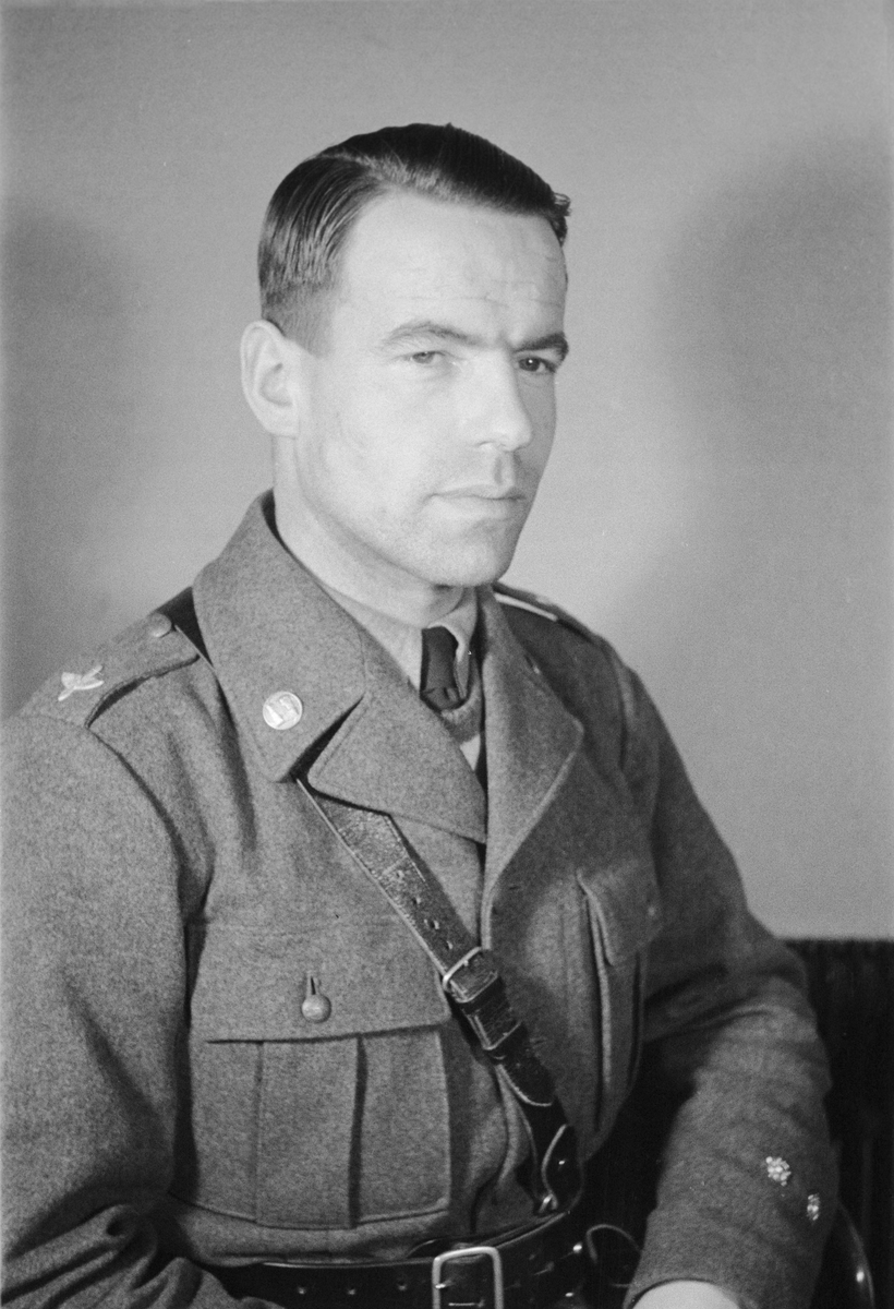 Porträttfoto av fältväbel Arne Andreas Fredin (nummer 755), maskinmästare vid F 19, Svenska frivilligkåren i Finland under finska vinterkriget, 1940.