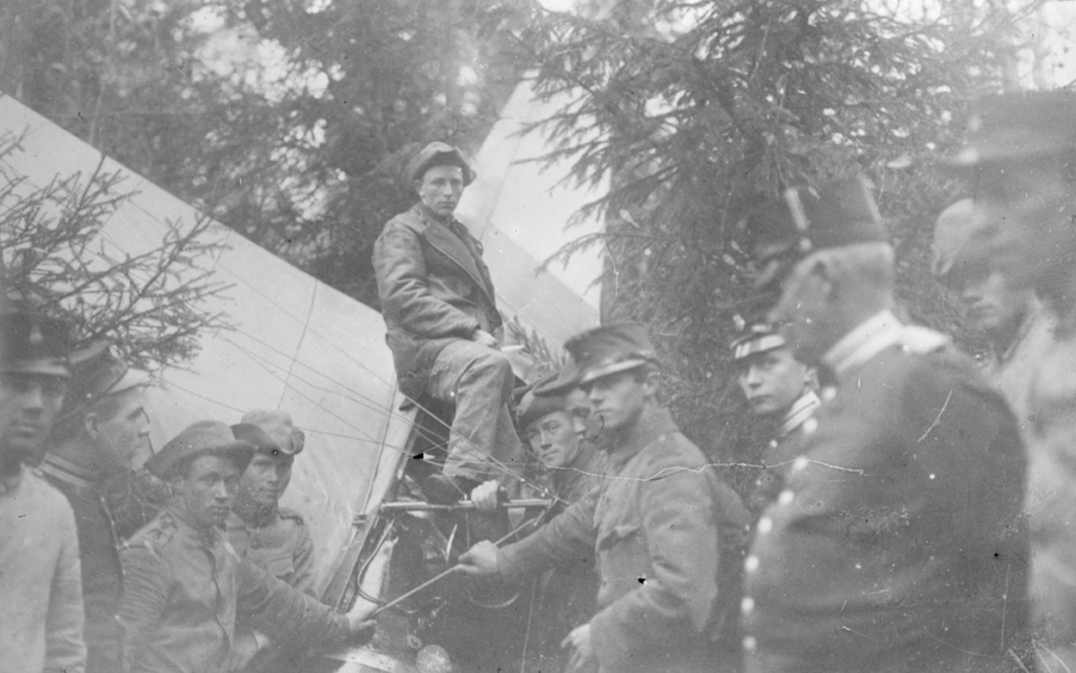 Haveri. Människor samlade kring resterna av ett havererat flygplan.