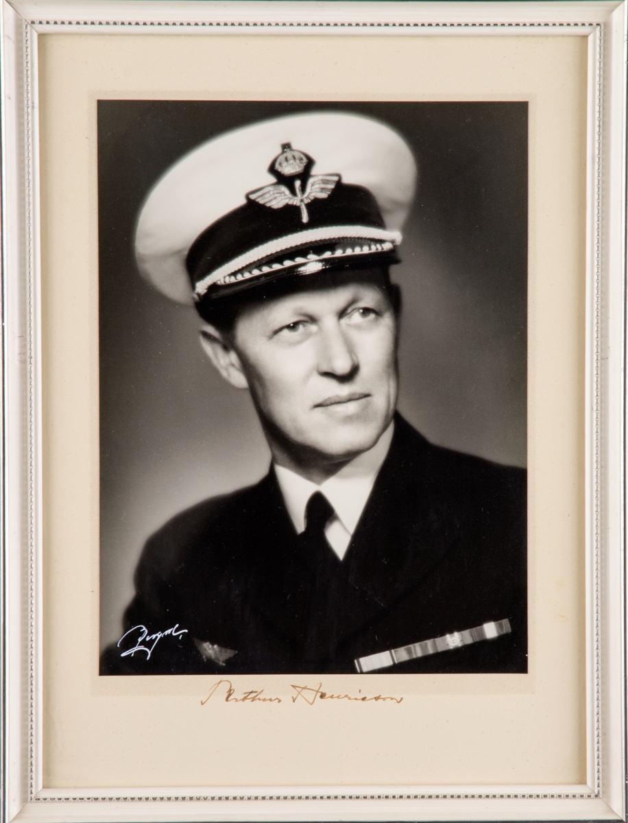 Porträttfotografi av Arthur Henricson, chef för Södermanlands flygflottilj. Signerat, inramat foto.
