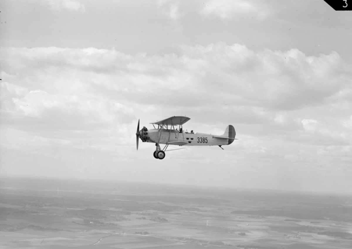Flygplan S 6 nr 3385 i luften. Flygfotografi.