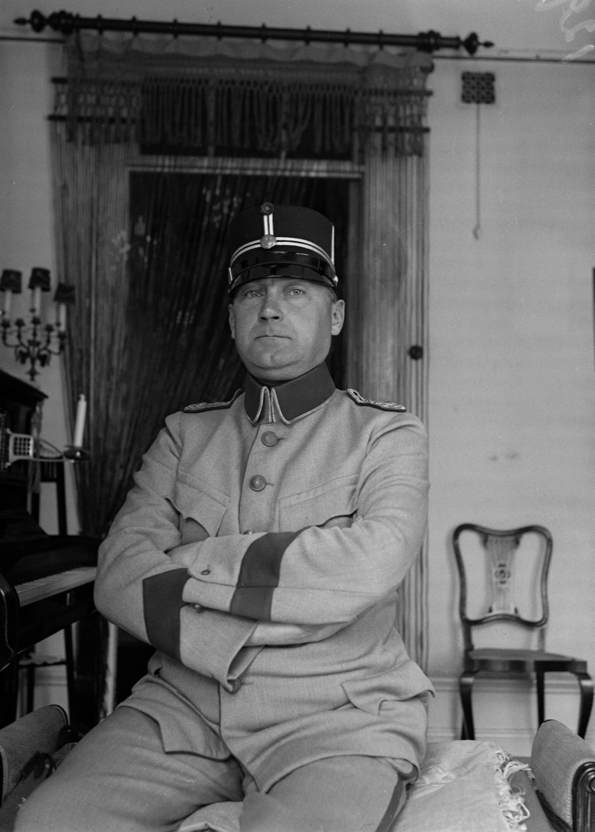 Porträttfoto av militär inomhus på I 4 och I 5 lägerområde på Malmen, omkring 1921-1924.