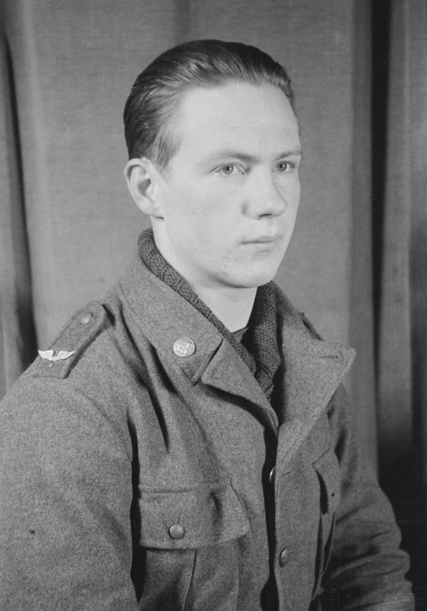 Porträttfoto av soldat Henning Hartung Paul Brithon (nummer 830), vapensmed i Kemijärvi vid F 19, Svenska frivilligkåren i Finland under finska vinterkriget, 1940.