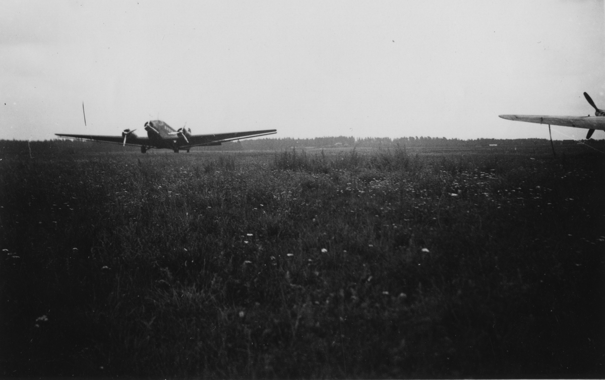 Flygplan TP 5 landar på flygfält på F 3 Östgöta flygflottilj.