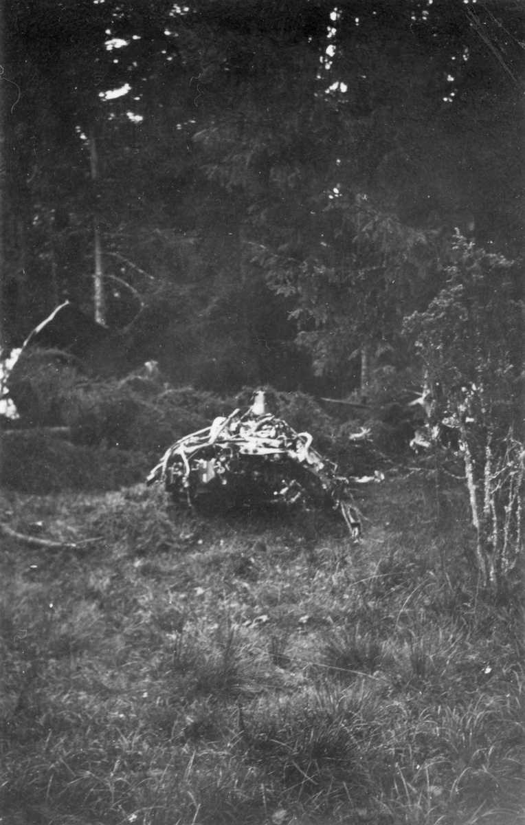 Haveridelar från flygplan B 3 Junkers Ju 86K i skogsparti.