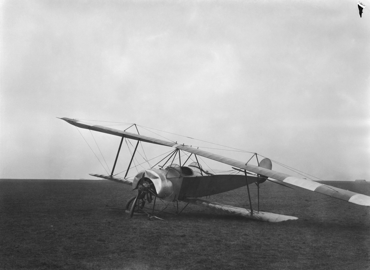 Havererat militärt flygplan Fokker B.I tillhörande Österrike-Ungern ligger på flygfält i Österrike-Ungern. Närbild.
