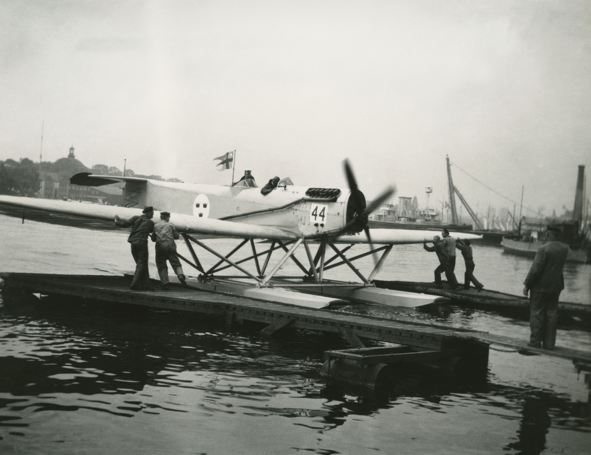 Marint flygplan Hansa typ 42 / S 3 nr 44 skjuts ut från slip, omkring 1926-1930.