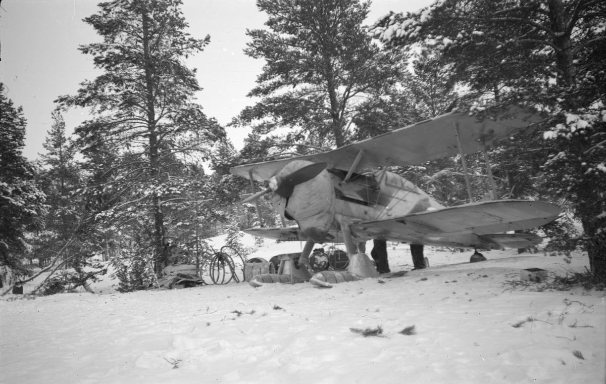 Flygplan Gloster Gladiator tillhörande F 19, Svenska frivilligkåren i Finland med motorkapell påsatt.