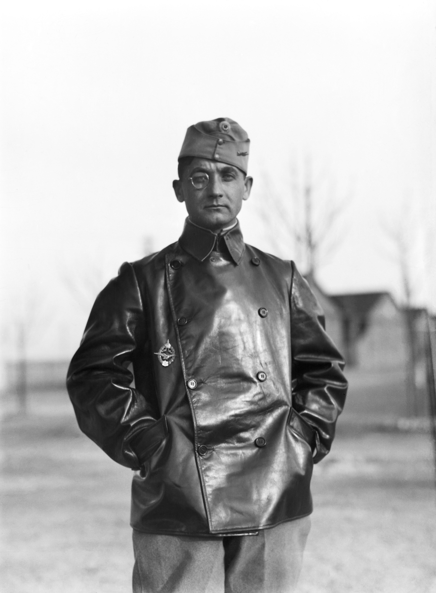 Porträttfoto av militärflygare från Österrike-Ungern utomhus under första världskriget. Mannen bär monokel.