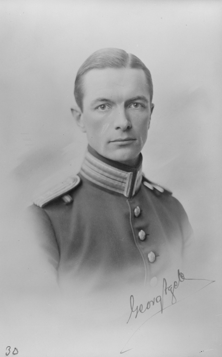 Porträtt av militära flygpionjären, Georg Agell från Västmanlands regemente. Porträttet är signerat av Agell.