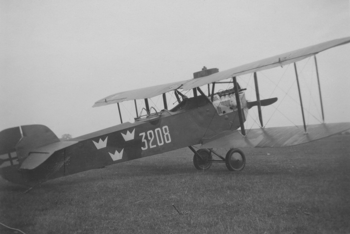 Flygplan FVM S 21, S 1 nummer 3208 står på ett flygfält vid flygdagen på Bulltofta den 5 september 1926.