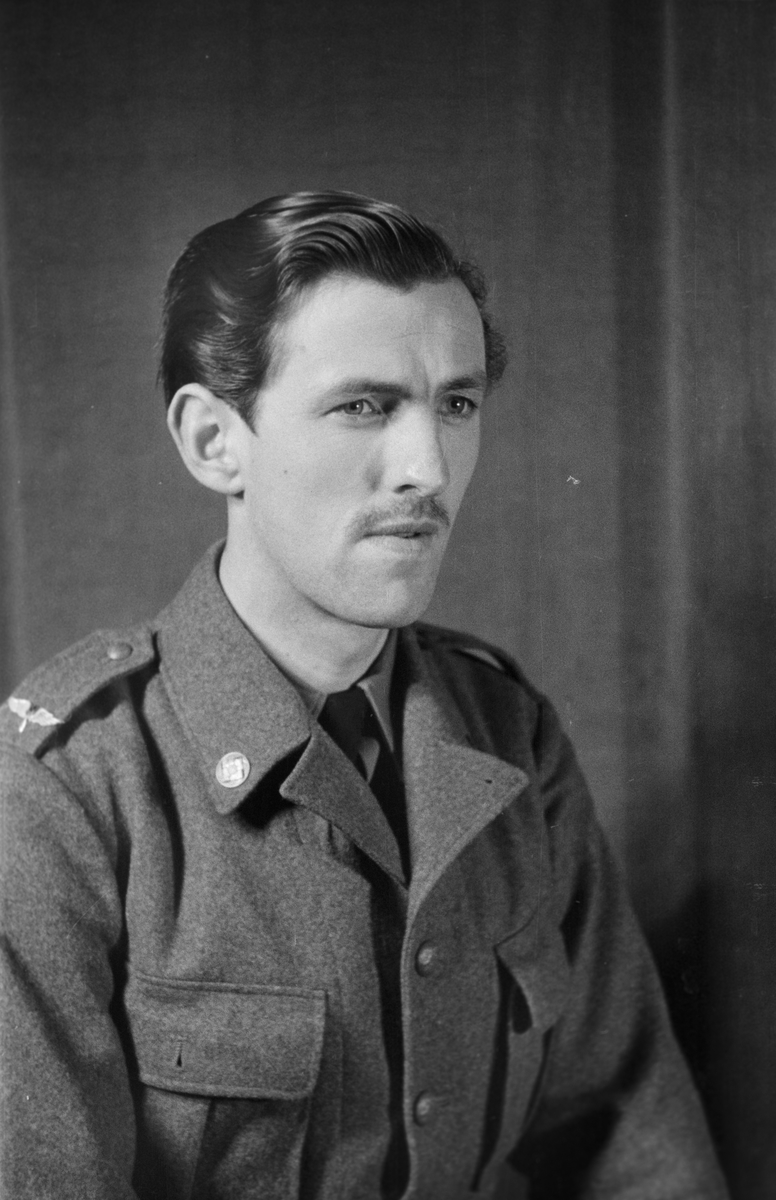 Porträttfoto av översergeant Stig Erik Valdemar Lundstam (nummer 765), signalist vid F 19, Svenska frivilligkåren i Finland under finska vinterkriget, 1940.