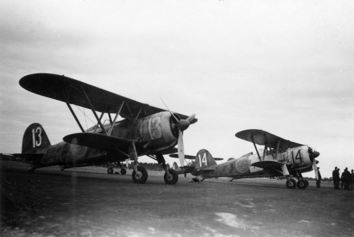 Flygplan J 11 tillhörande F 9, står på F 21 Kallax, omkring 1942.