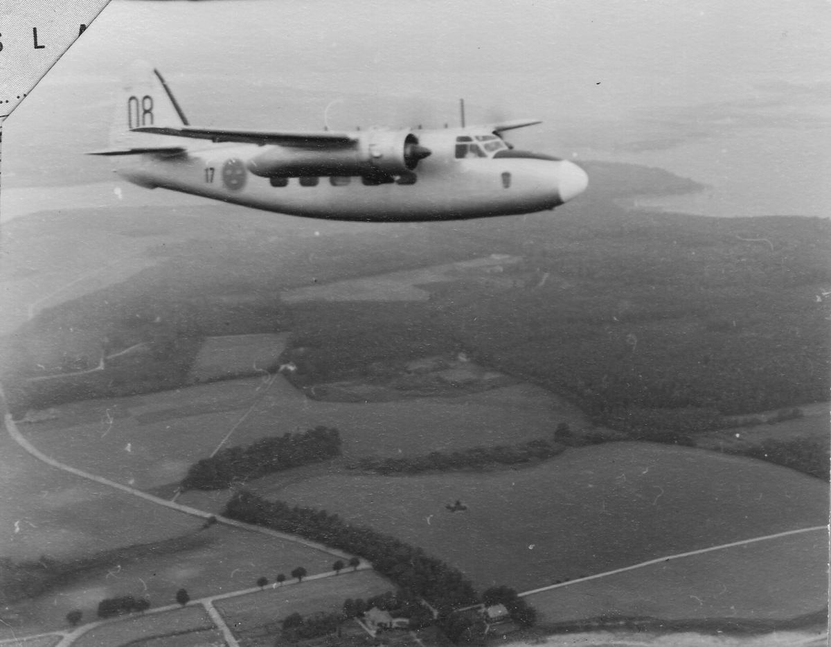 Transportflygplan TP 83 märkt nummer 08 från F 17 Kallinge i luften, under flygning till Turkiet, 1955.