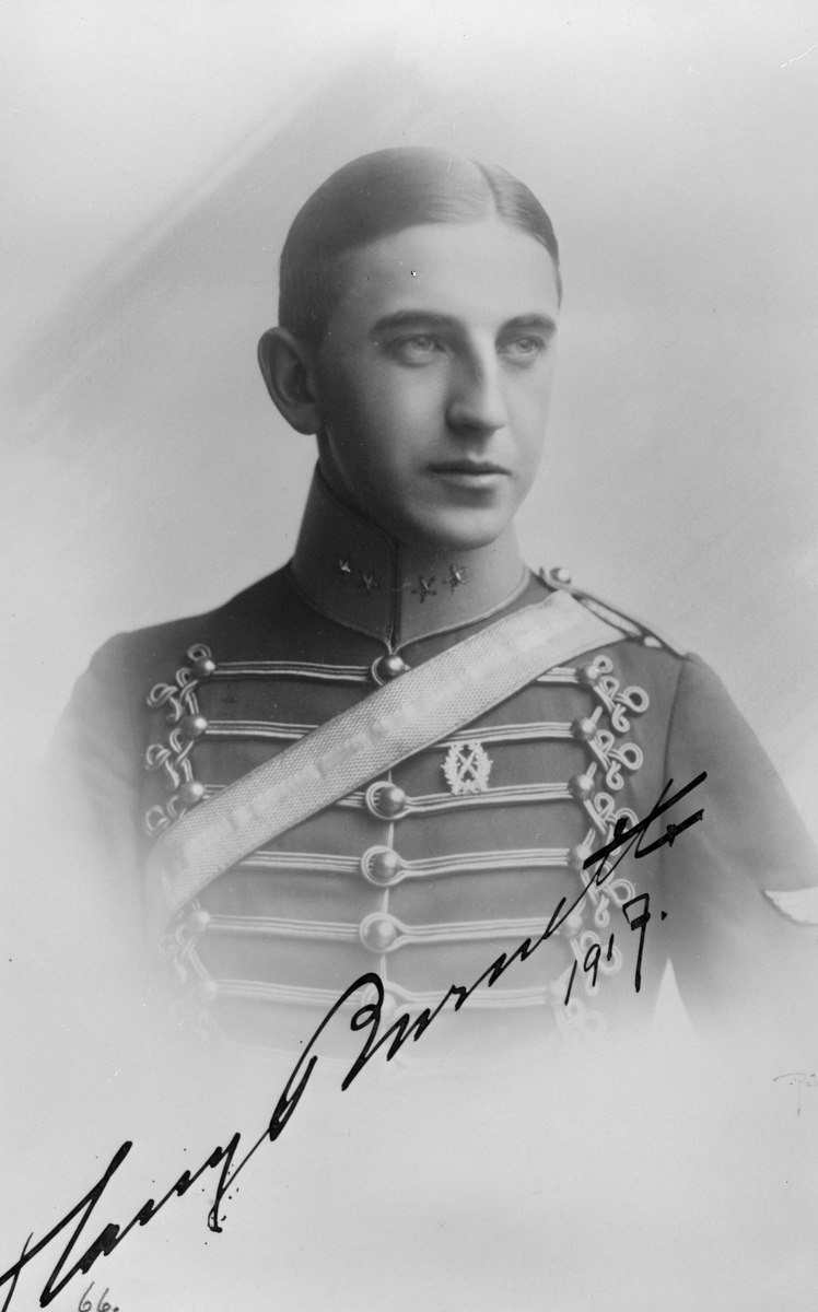 Porträtt av militära flygpionjären Harry Burnett, från Livregementets grenadjärer. Porträttet är signerat av Burnett.