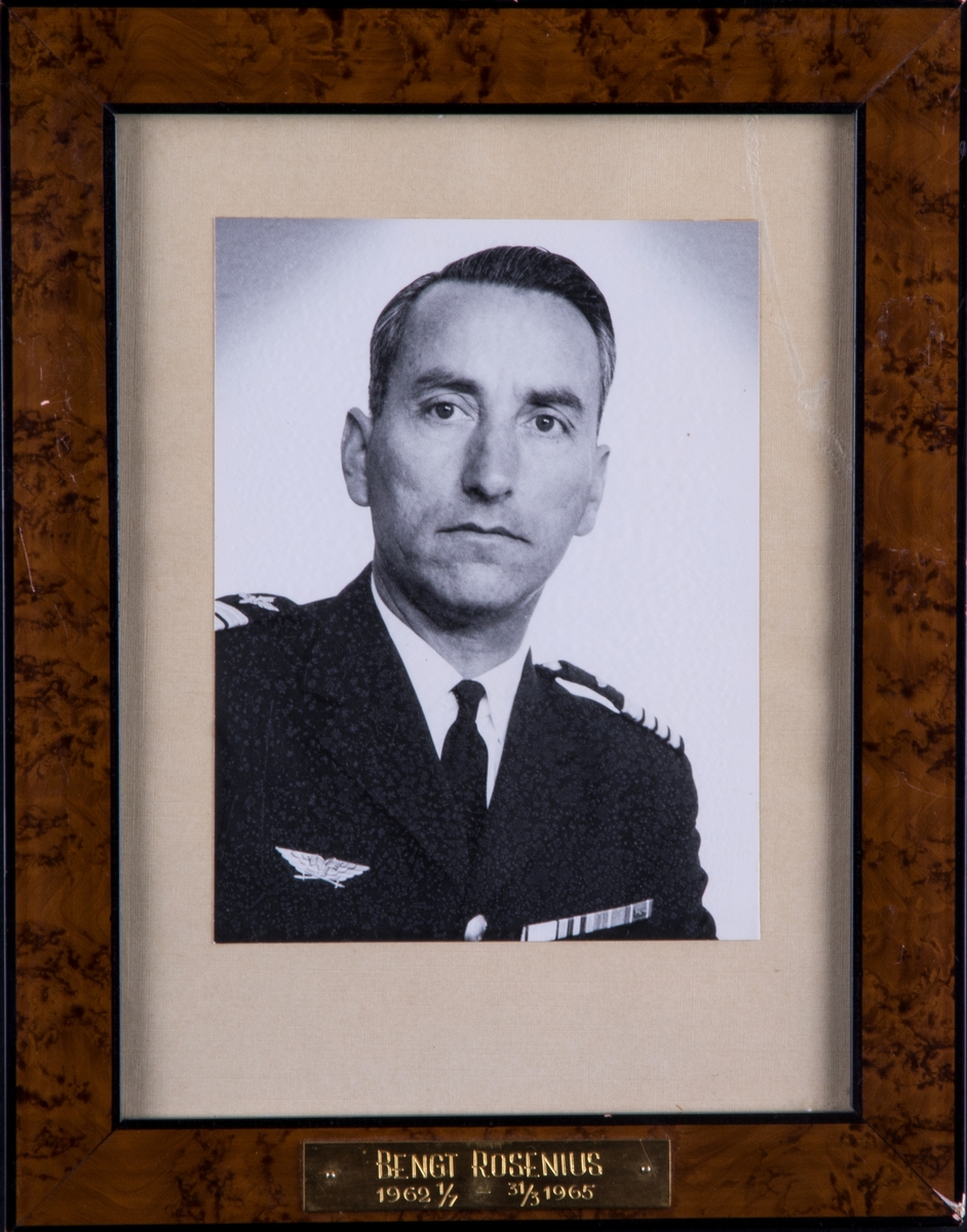 Porträttfotografi av Bengt Rosenius, chef för F 3 Östgöta flygflottilj 1962-1965. Inramat foto.