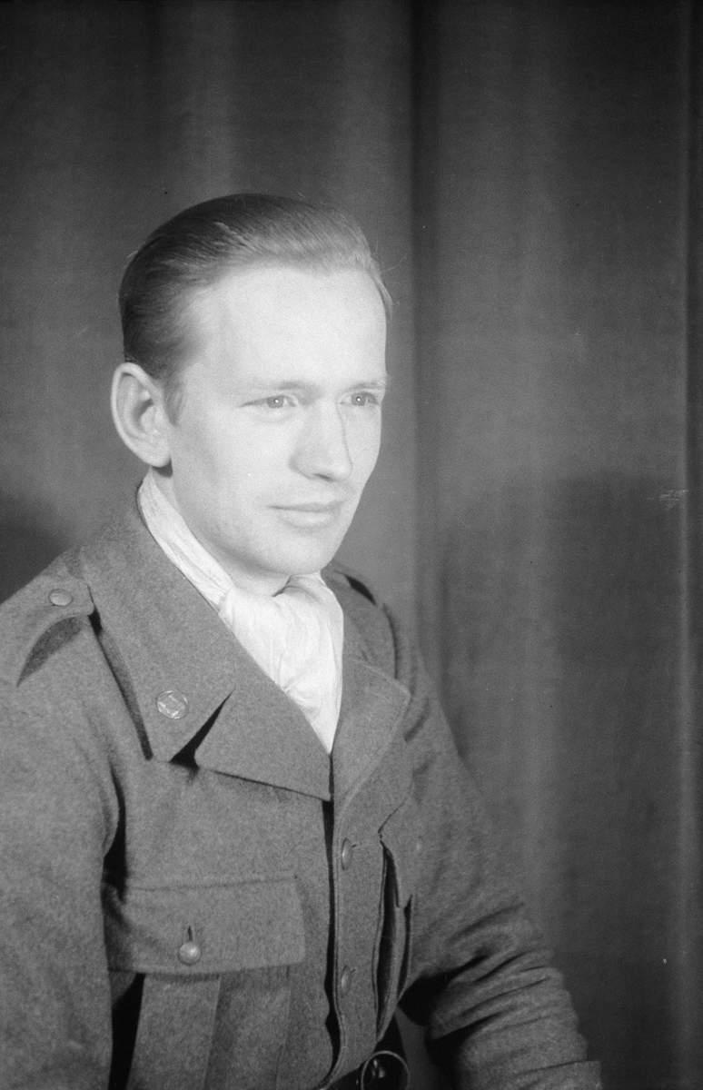 Porträttfoto av fältväbel Bo Robert Paulsson (nummer 767), stationsunderofficer vid F 19, Svenska frivilligkåren i Finland under finska vinterkriget, 1940.