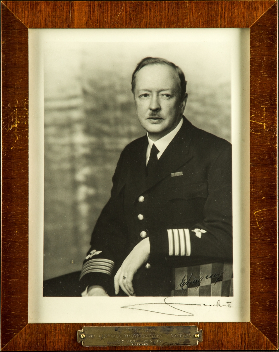 Porträttfotografi av Erik Sjögren, styresman för Centrala flygverkstaden i Västerås 1927-1931. Signerat, inramat foto.