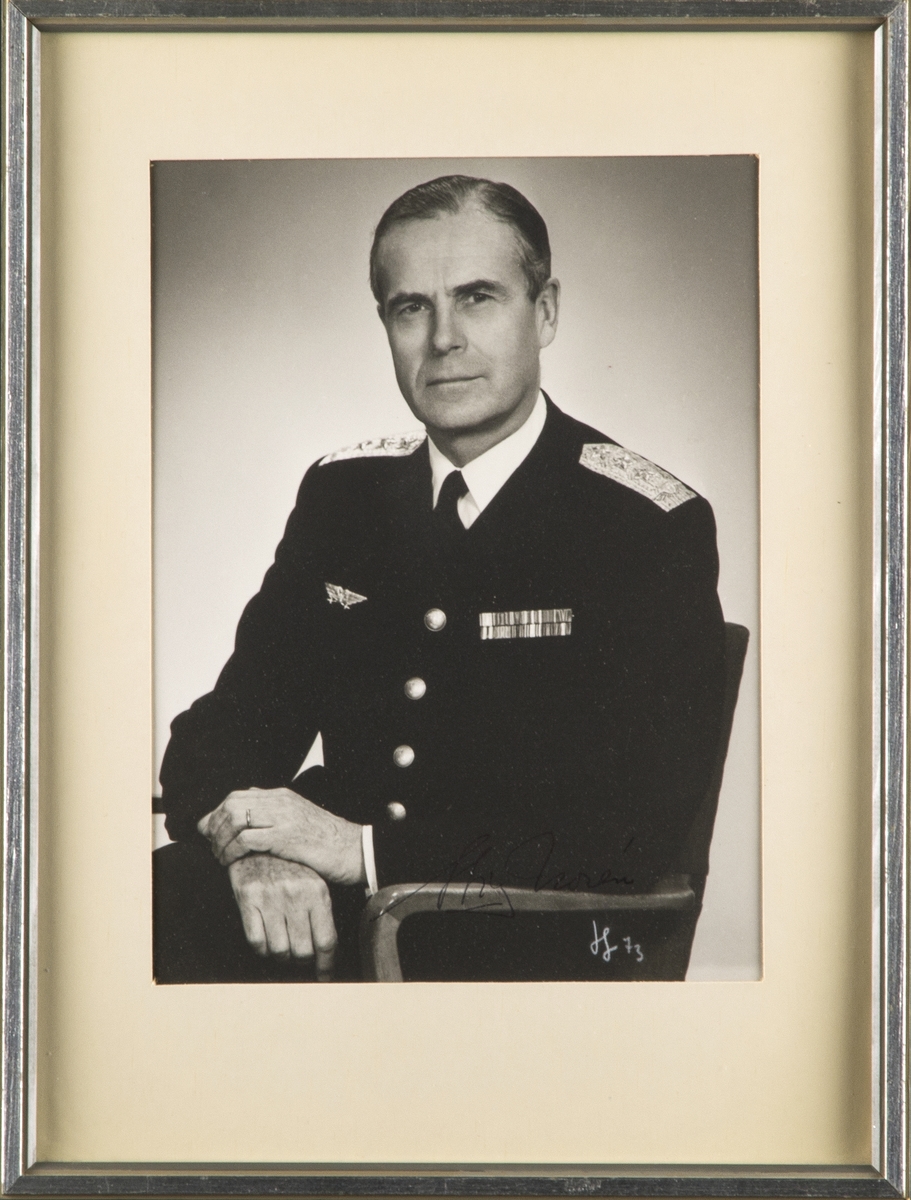 Porträttfotografi av Stig Norén, chef för Flygvapnet 1968-1973. Signerat, inramat foto.