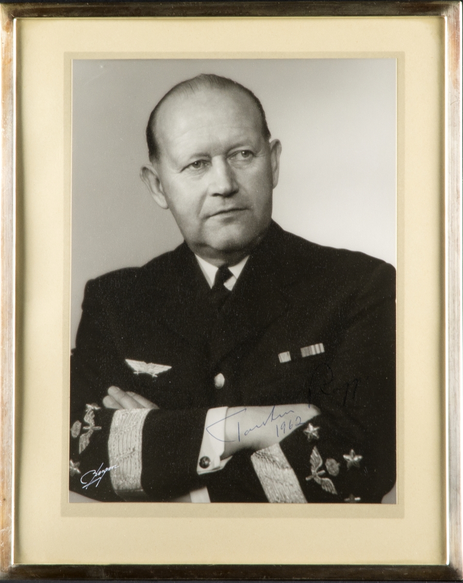 Porträttfotografi av Torsten Rapp, chef för flygvapnet 1960-1961. Signerat, inramat foto.