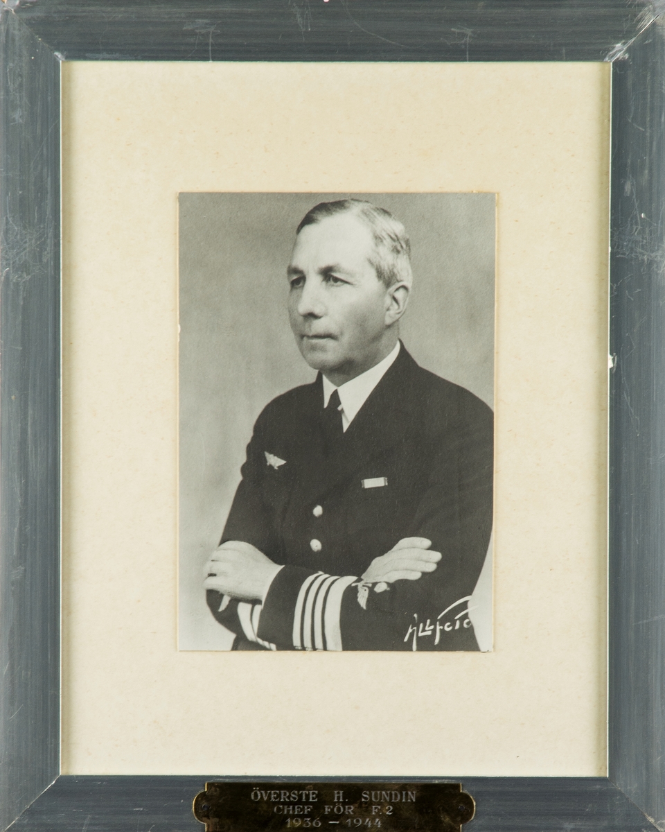 Porträttfotografi av Herman Sundin chef för F 2 Roslagens flygflottilj 1936-1944. Inramat foto.