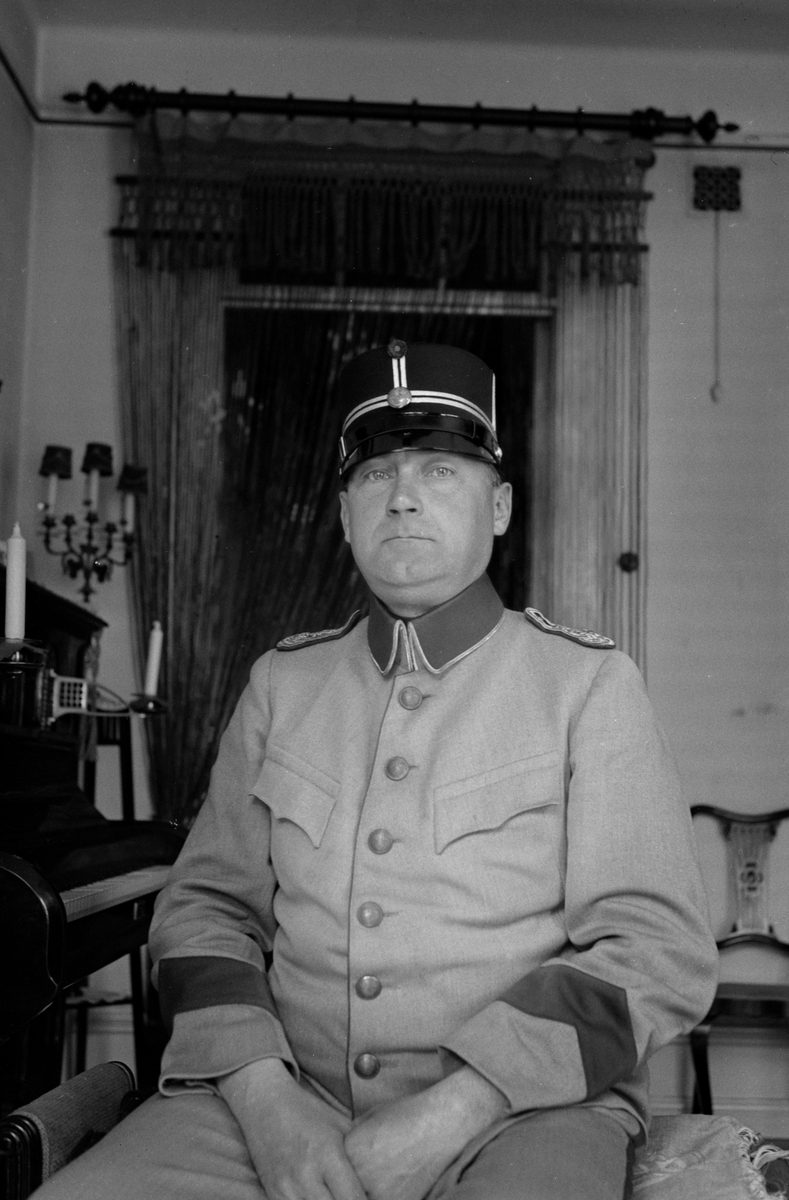 Porträttfoto av militär inomhus på I 4 och I 5 lägerområde på Malmen, omkring 1921-1924.