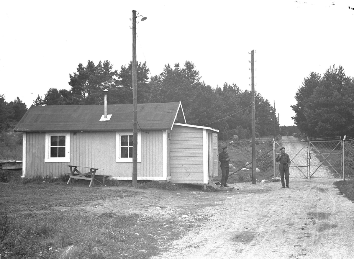 Vaktlokal och grindar vid F 2 Roslagens flygflottilj. Exteriör.