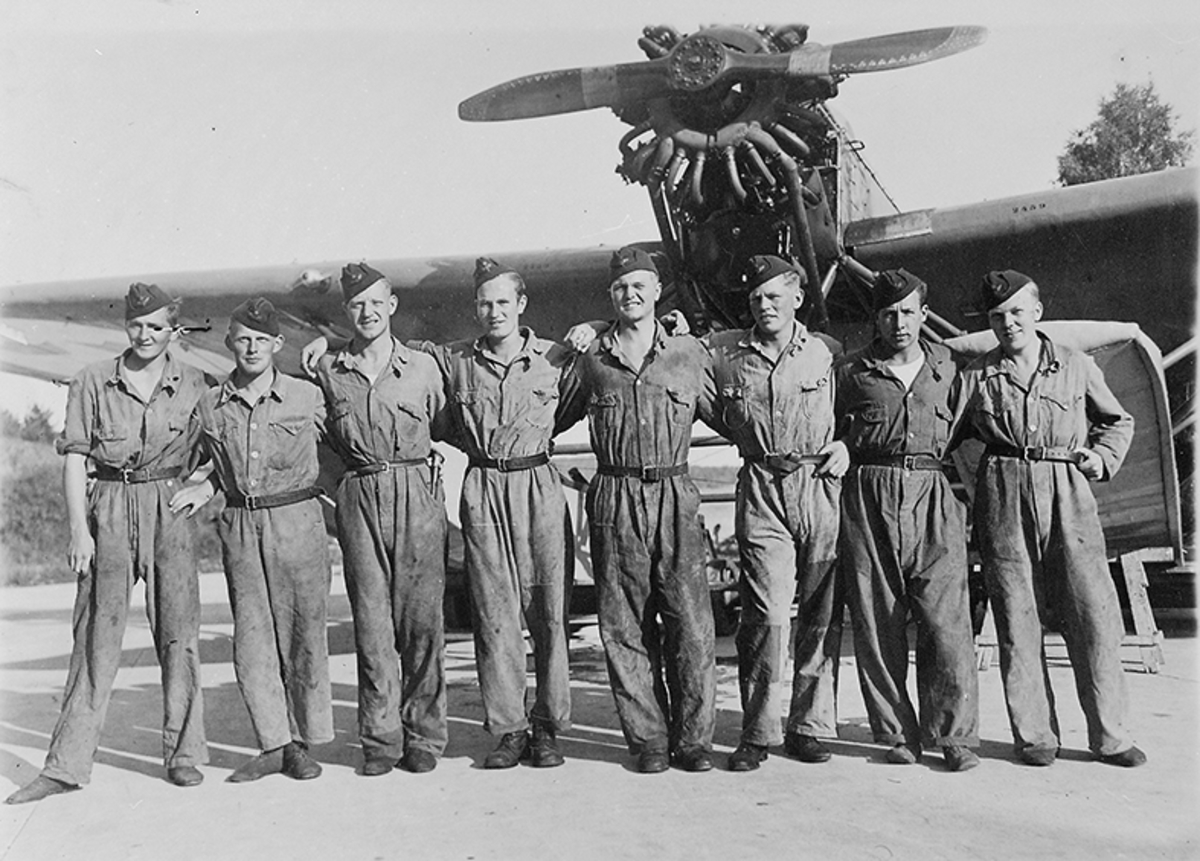 Mekaniker framför flygplan S 5