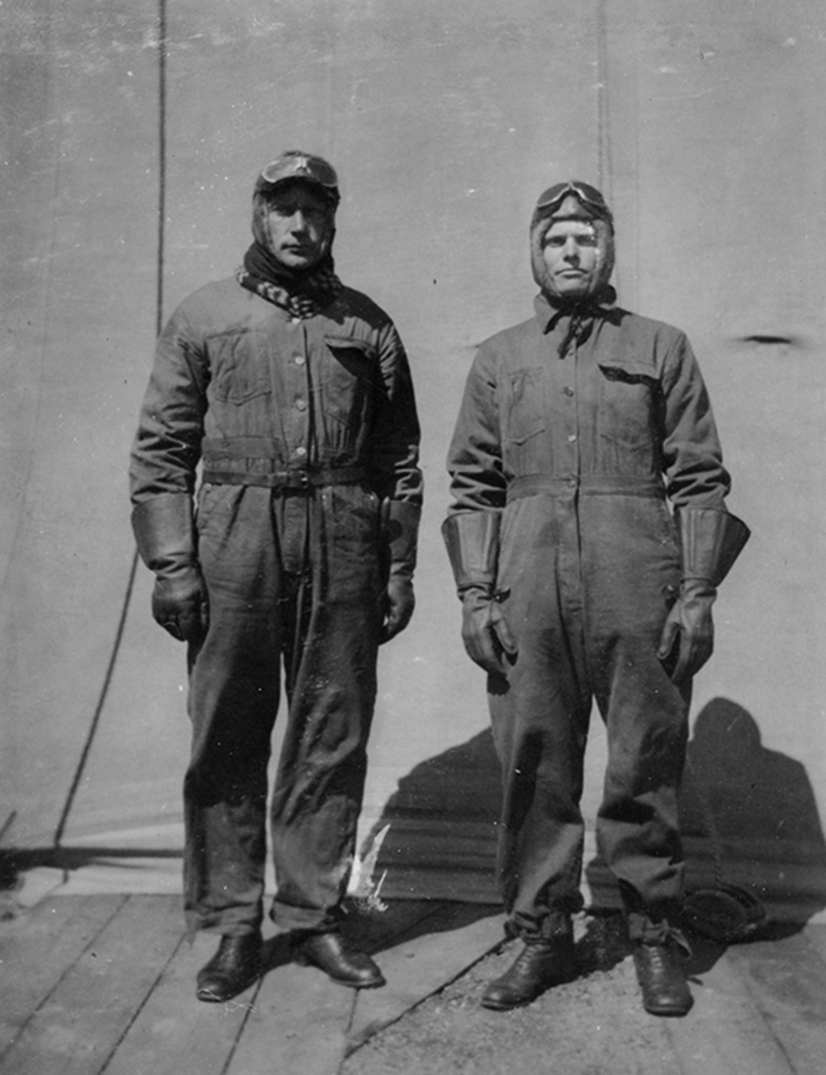 Albin Ahrenberg och Otto Christell flygarklädda.