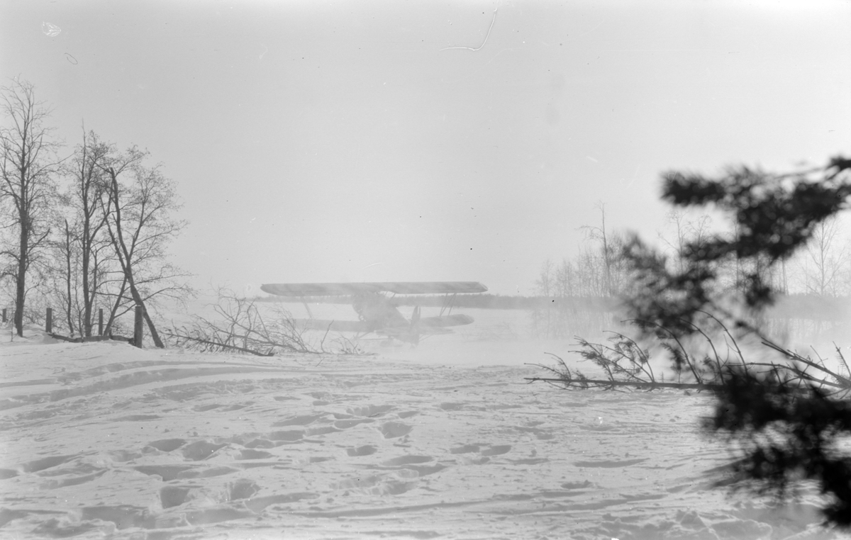 Flygplan Hawker Hart tillhörande F 19, Svenska frivilligkåren i Finland kör ut för start.