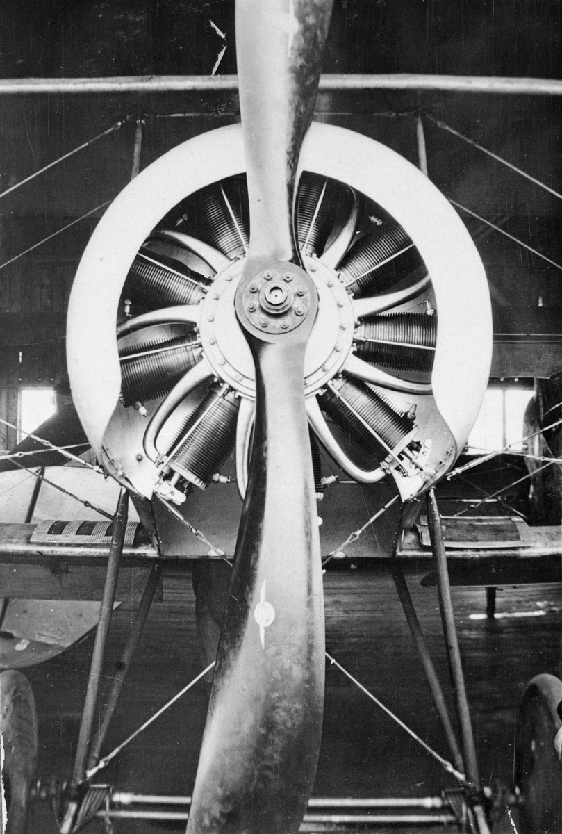 Motor Le Rhône / Thulin typ A monterad på flygplan FVM Tummeliten, 1920-tal.