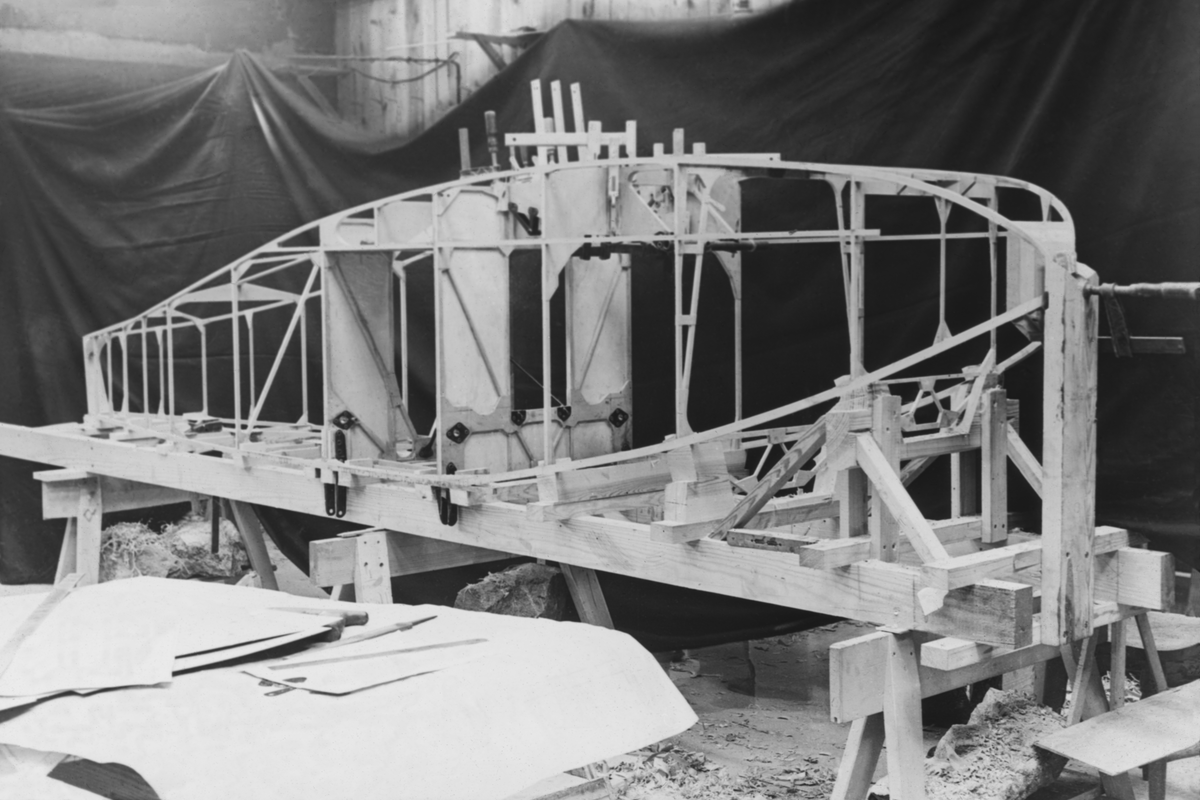 Vingar till flygplan Sparmann S-2 under konstruktion. Vy från sidan.