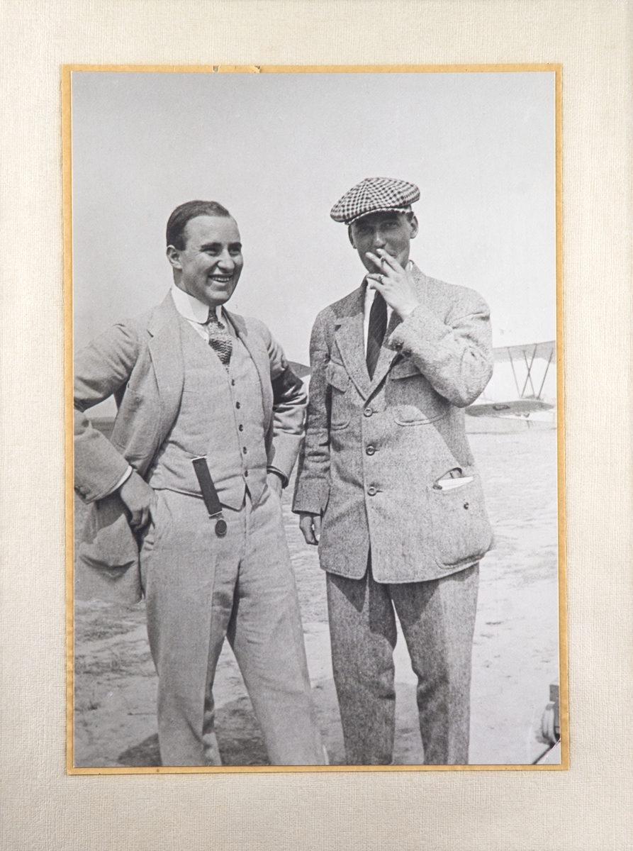 Porträtt av flygplanskonstruktör Edmund Sparmann samt okänd man.