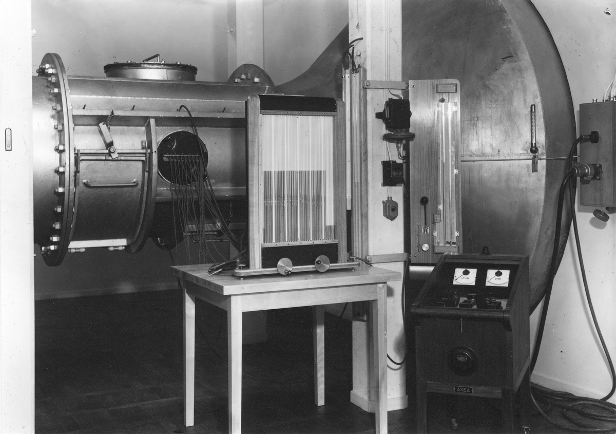 Mätsträcka för höghastighetstunnel för vindtunnelprov på Flygtekniska försöksanstalten i ursprungligt skick. Försöksanordning för höga underljudsfarter.
