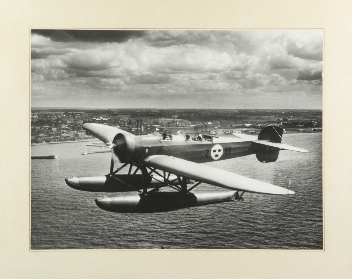 Flygplan S 5D från F 2 Roslagens flygflottilj flyger över Helsingborg, 1935.