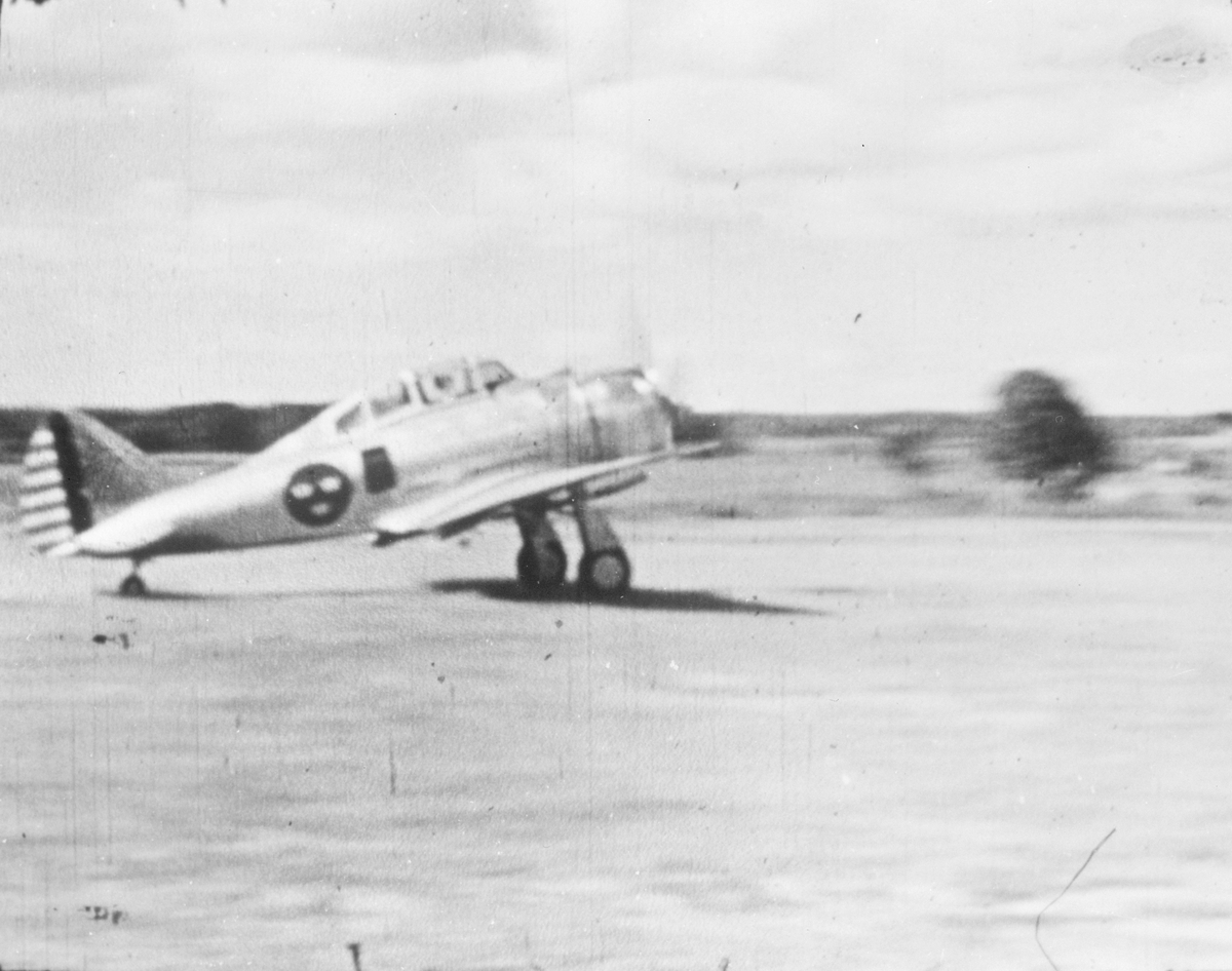 Flygplan Seversky Republic EP-106, med svensk och amerikansk märkning, på ett flygfält på Fillippinerna.