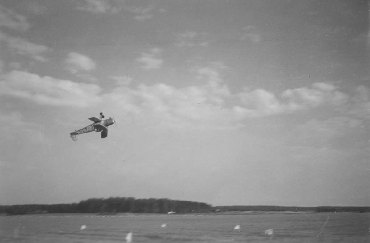 Flyguppvisning med flygplan Bücker Bü 131B Jungmann med civil märkning SE-AGU. Vid flygdagen Flygets dag på F 3 Malmen, 1938.
