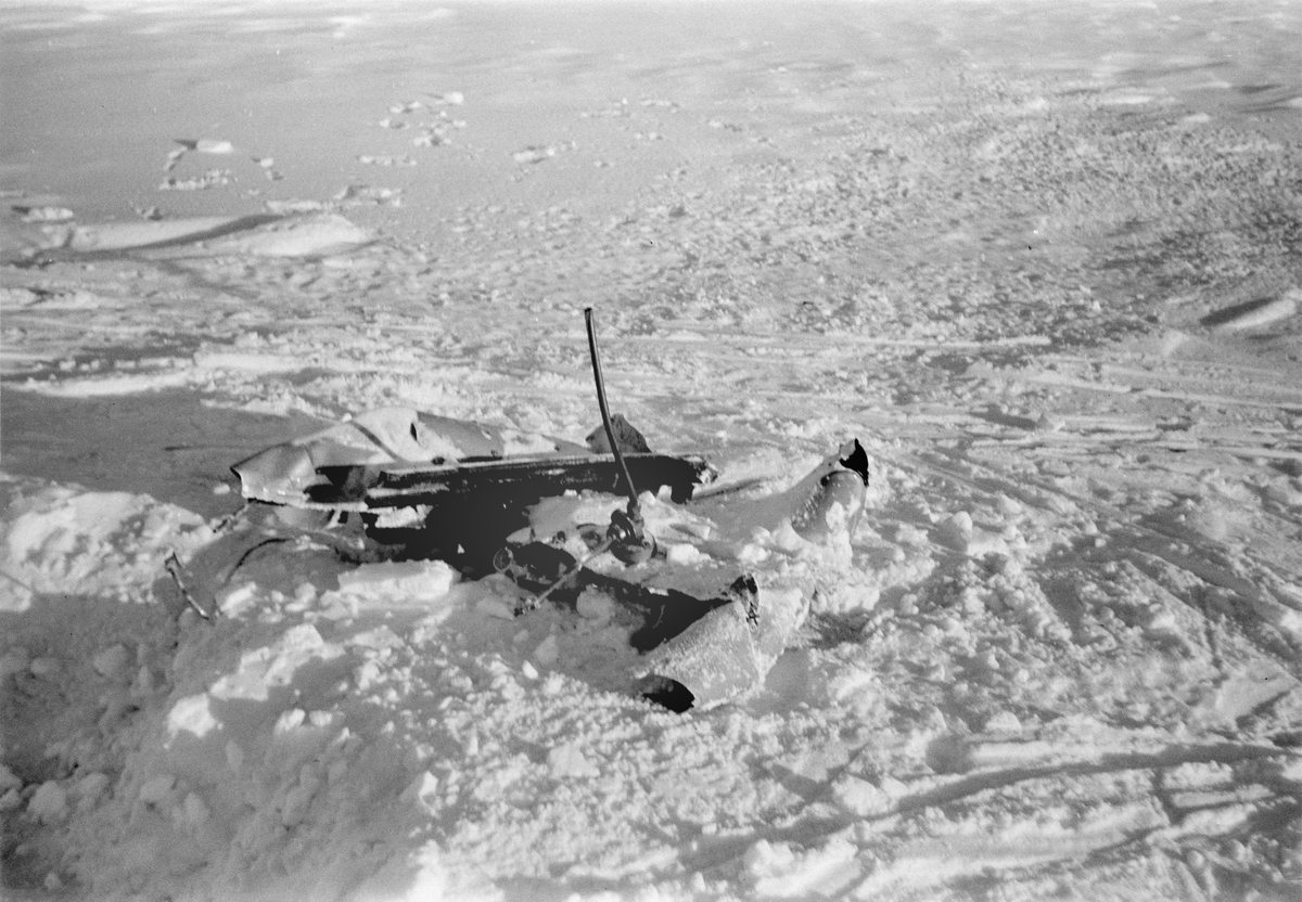 Del av havererat flygplan Gloster Gladiator gul D vid F 19, Svenska frivilligkåren i Finland, 10 mars 1940.