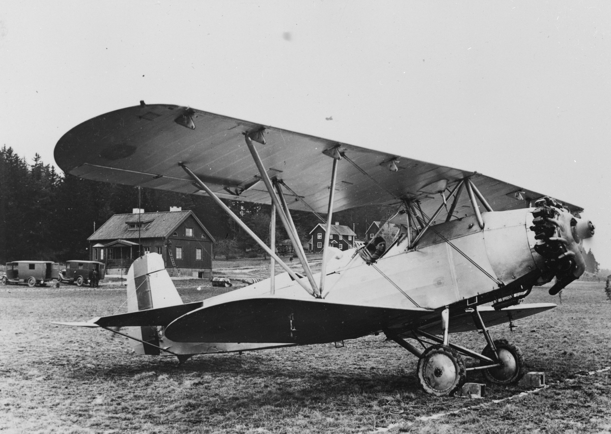Flygplan Ö 9 står på ett fält. Flygplanet är omärkt.