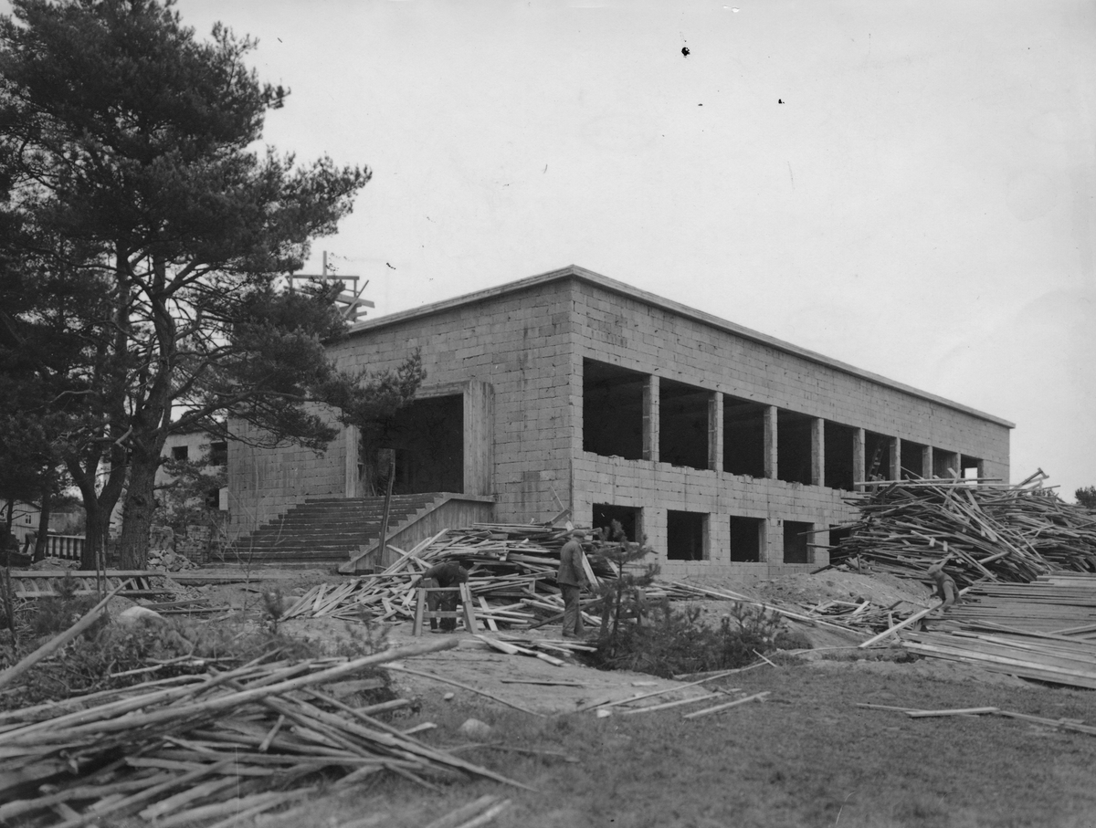 Titel: Ekonomibyggnad byggs på F 2 Roslagens flygflottilj, 1937