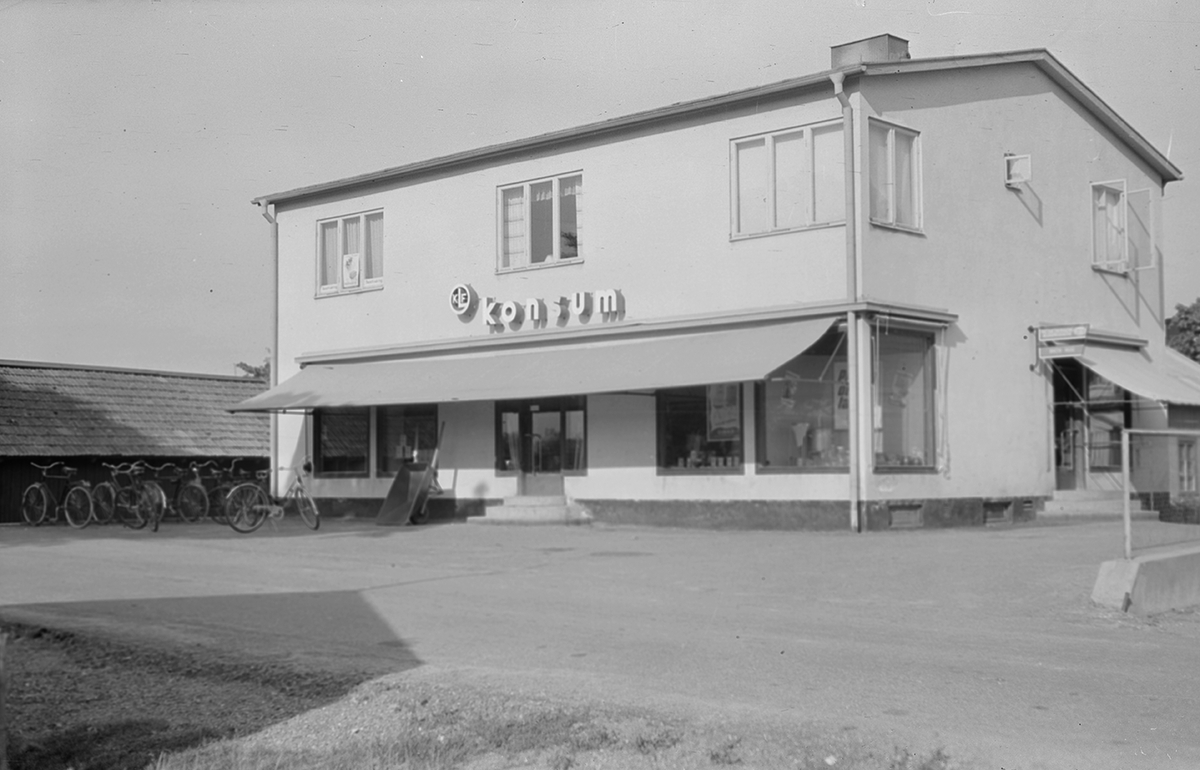 Konsumaffären på Norrmalmsvägen i Malmslätt, 1940-tal.